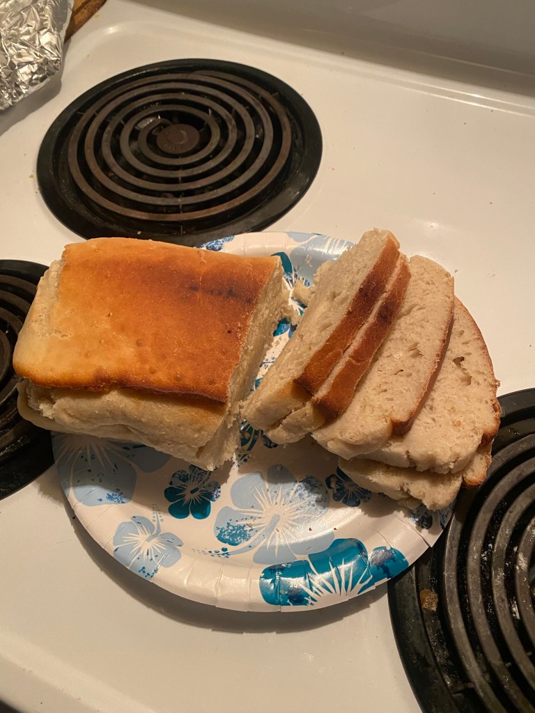 Fast forward to this past weekend at the cabin. My wife found a recipe called “water bread”…it said you don’t have to knead the dough. I jumped right on that …lol. This was also a little tough because after the cabin sitting empty for three years, our oven no longer works. So, I had to use a small toaster oven. Well, it came out great. As I sit here at work writing this, my sandwich for lunch today is made with this bread. Can’t wait to try it today. Til next time peeps.