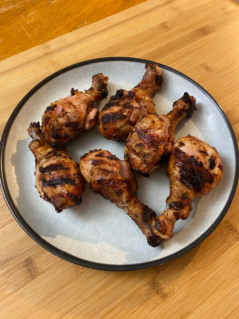 Haven’t done any chicken in a while & decided on some drumsticks using this marinade I found at that grocery store we go to from the cabin. It’s Tony Chachere’s just like the seafood one I used on the shrimp. Our local grocery store at home carries this brand, but for some reason, not these marinades. So far now we have used the seafood, burger, & now the chicken one. All have been great. They have others too, just can’t remember them all right now.