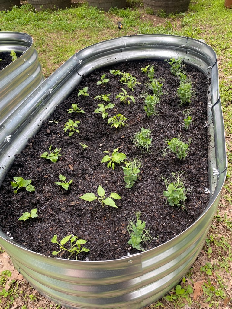 We now have finished the coop & the girls are 8 weeks old now. We have 15 raised beds with all kinds of veggies & herbs going. Kim has done veggies before a long time ago, but I never have. I have really enjoyed it so far. The chickens are great…so sweet & so much fun to watch.