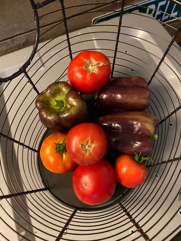 So, anyway when I got to the cabin after work yesterday, I went on & harvested a couple of things. We have like 17-18 tomatoes going, but these were the only ones with red. Also picked our first 3 purple bell peppers. Have never seen or heard of them before, but they are really cool looking. I found them at a Tractor Supply. I can’t wait to get more in depth with learning this app & grow better & more crops in the future…really enjoying this. Til next time peeps…